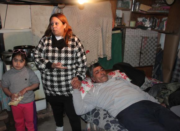 Luis prácticamente no habla. Sólo emites largos quejidos por causa del dolor insoportable que le provocan las tres hernias de disco y el aplastamiento de vértebras que tiene en la columna. Sufrió estas lesiones hace cuatro meses mientras trabajaba para una empresa constructora. Además de ese accidente laboral que le dejó casi sin movilidad la pierna derecha, tuvo que abandonar el lugar donde vivía. “Mi papá nos prestaba un par de piezas pero nos corrió porque dejé de ayudarlo con los impuestos. Es que con el accidente de Luis nos gastamos toda la plata en remedios y en el remís para llevarlo al médico. Alquilamos unas piezas en Villa San Damián por dos meses, pero la dueña de la casa nos corrió con la Policía por falta de pago, aunque no le debíamos nada”, dijo Mariela Páez, esposa de Luis.