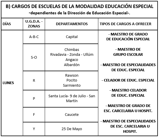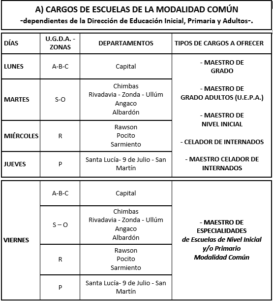 Atención para carga de designaciones de cargos directivos, excepto zonas alejadas y ESA (sin listado y con proyecto): se desarrolla de lunes a viernes en el horario de 8 a 12, en la oficina de Reubicaciones del Ministerio de Educación, ubicada en el Centro Cívico, 2° piso, núcleo 2, segundo pasillo.