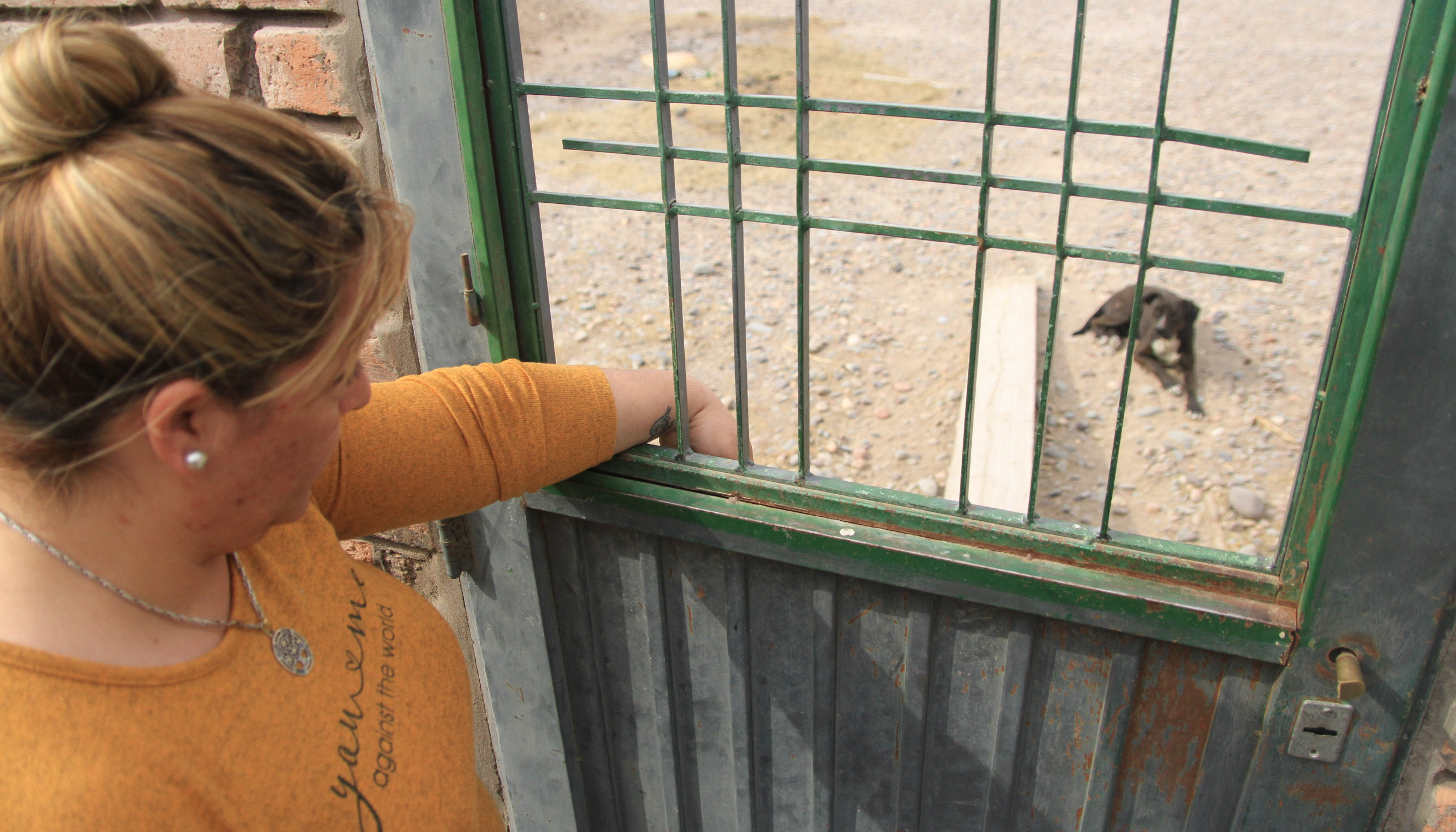 La familia es casera de una fábrica que está ubicada en lateral de Ruta 40, a metros de callejón Blanco, en Chimbas. El terreno es enorme y tiene un sector que está siendo edificado y que está separado de la casa y de la fábrica. Ahí es donde apareció el animal. "Antes nosotros pasábamos para ese sector a regar las enredaderas con las que está cerrado el terreno, pero ahora no podemos porque el perro no nos deja ni abrir la puerta. Mi hija jugaba ahí y ahora no puede pasar", dijo Yésica Vergara, la esposa de Leonardo y comentó que en ocasiones el perro intentó pasar para el otro sector donde ellos tienen sus mascotas y que eso les da miedo. Incluso, en el instante que alguno de los otros perros de la casa se acerca a la división, el perro abandonado no para de ladrar y mostrar sus enormes dientes. Lo mismo hace cuando cualquier persona pasa por el lugar.