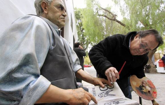 El trabajo fue un espectáculo para los peatones. Es que los tres empleados estuvieron apostados en el lugar con pinturas, pegamento y pinceles. Lo primero que hicieron fue arreglar las manos. Luego colocaron el libro, y para concluir, repintaron la estatua, algo que les llevó mucho tiempo por los detalles.