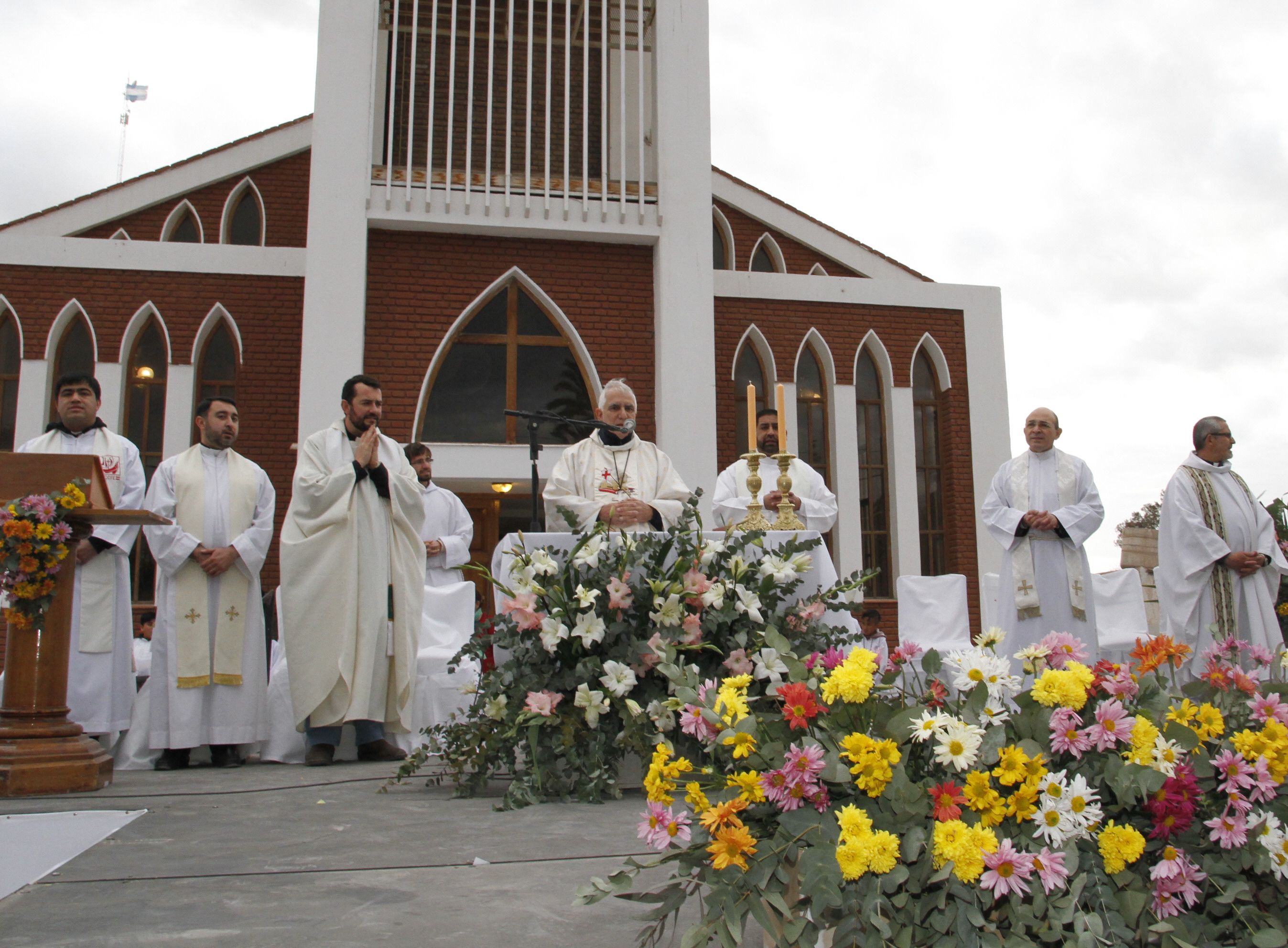 Monseñor, Jorge Lozano, fue el encargado de celebrar la misa en honor a Santa Rosa, pero no estuvo solo. Sacerdotes de diferentes parroquias llegaron hasta 25 de Mayo para participar de la ceremonia.