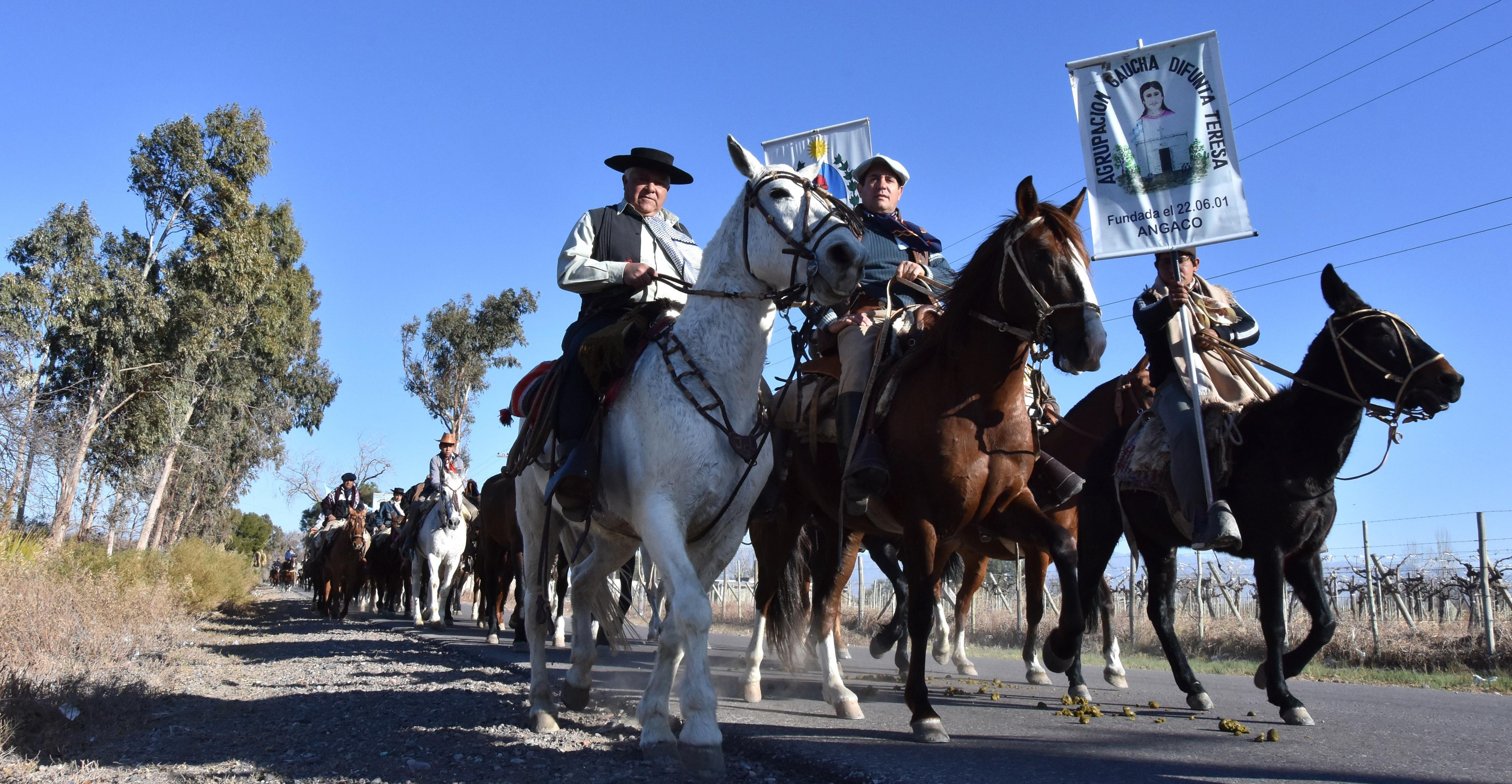 Contingente. Unos 300 gauchos participaron de la cabalgata a la Difunta Teresa, en Angaco, organizada por la agrupación gaucha angaquera que lleva su nombre.