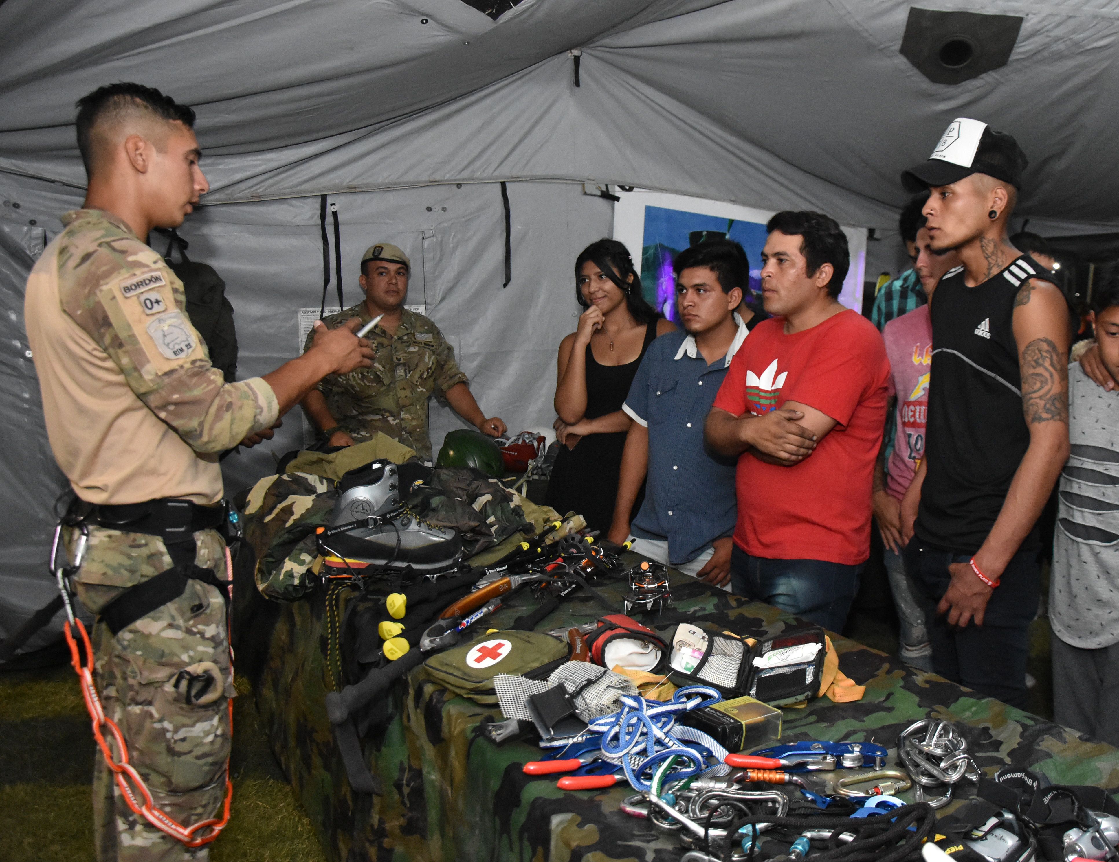 Otro servicio extra fue el que brindó el RIM 22. Los soldados montaron un puesto donde expusieron el armamento que utilizan en la Fuerza y se dedicaron a explicarles a los jóvenes sobre los requisitos para ingresar al Ejército Argentino. De paso, posaron con las personas que les solicitaron tomarse una foto con ellos.