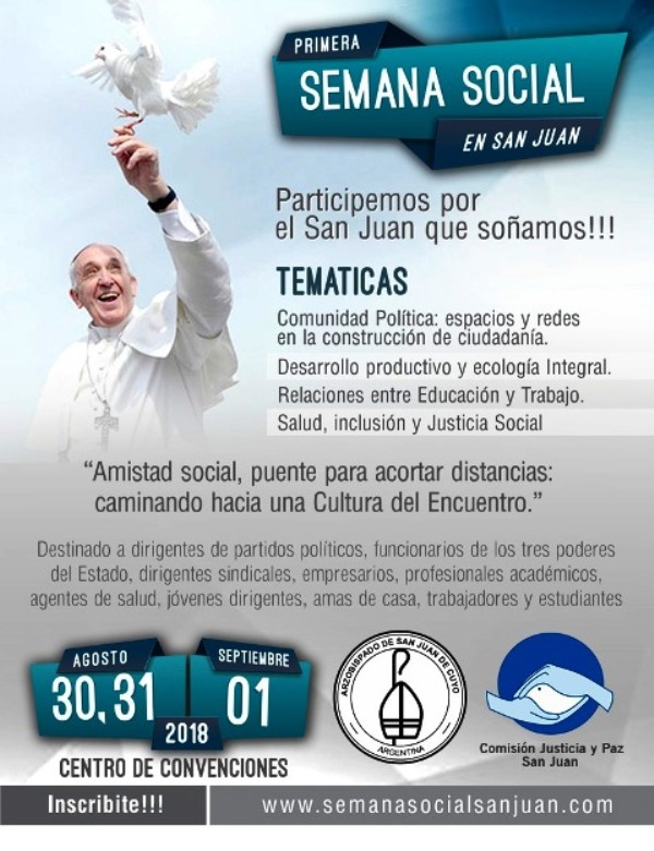 Se trata de tres jornadas que tendrán talleres sobre diferentes ejes como comunidad política, inclusión, justicia social y desarrollo productivo, entre otros. También participarán personas expertas en los temas y los que quieran participar pueden hacerlo a través de www.semanasocialsanjuan.com.