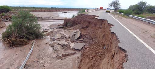 Actualmente equipos de Vialidad Nacional “trabajan en la zona para restablecer el tránsito en los próximos días. Se recomienda no llegar hasta la zona, ya que hay banquinas erosionadas y calzada deteriorada”.