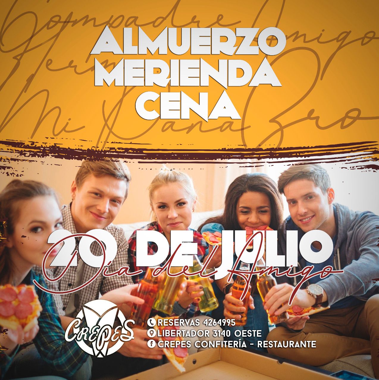 Este Día del Amigo sólo tenés que pensar con quién celebrarlo, porque el lugar es uno: Crepes. El local de Avenida Libertador 3140 (O), en Rivadavia, se prepara con todo para que puedas estar con tus amigos.