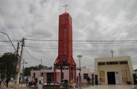 Hoy se realizará la fiesta mayor de la Virgen del Rosario, en 9 de Julio. Y, además de celebrar con un nuevo templo, inaugurado hace unos días, también estrenarán las dos campanas que fueron donadas. Al cierre de esta edición, estaban colocándolas en el imponente campanil.