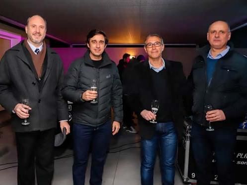 De izq a der, el Arq Osvaldo Lucero, el Sr Intendente Emilio Baistrocchi, el Ingeniero Sergio Fernández y el Ing. Gabriel Pérez en el momento del brindis.