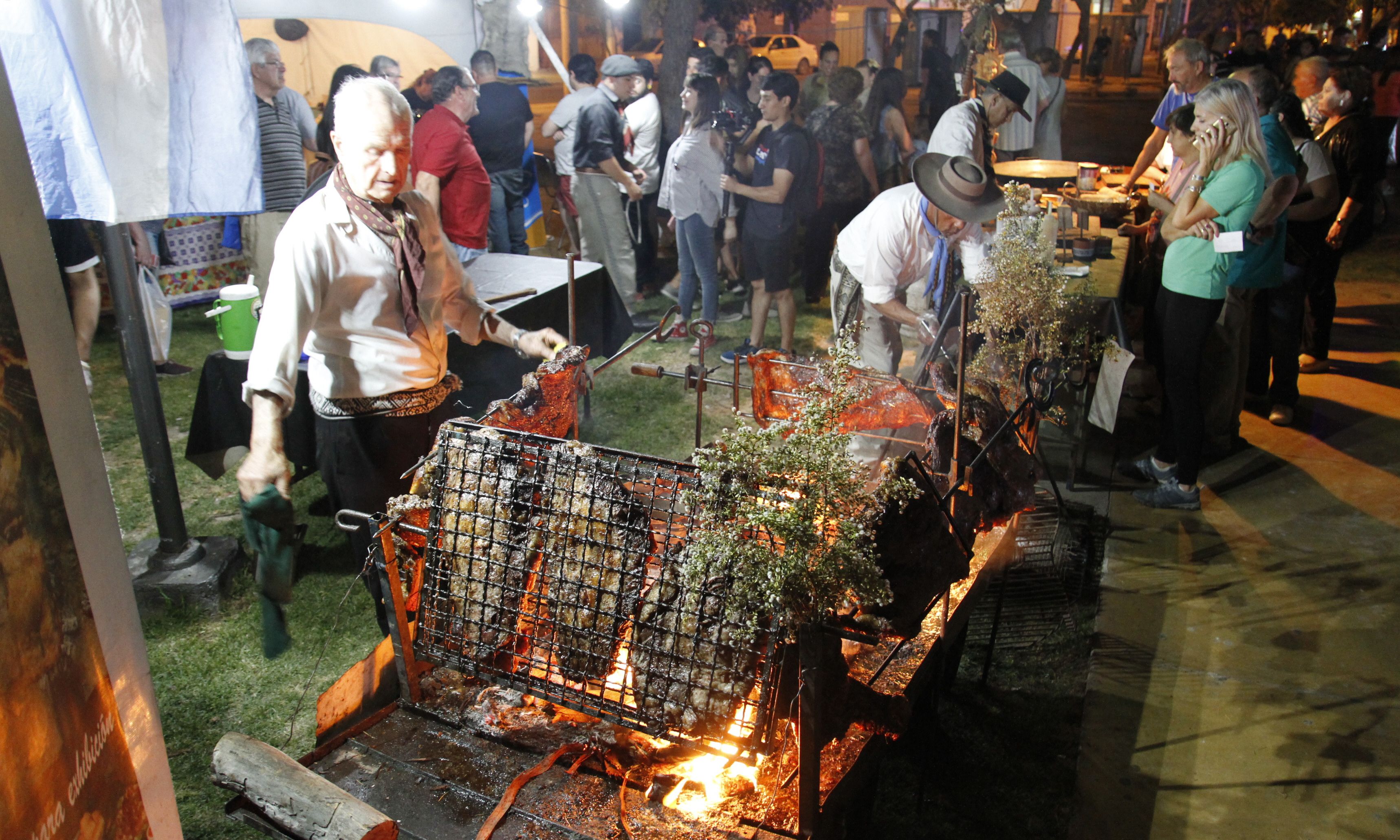 El stand con mayor despliegue para preparar su menú. Sandwichs de punta de espalda a las llamas y porciones de carne a la olla provocaron una incesante fila. El "postre", un copón de fernet.