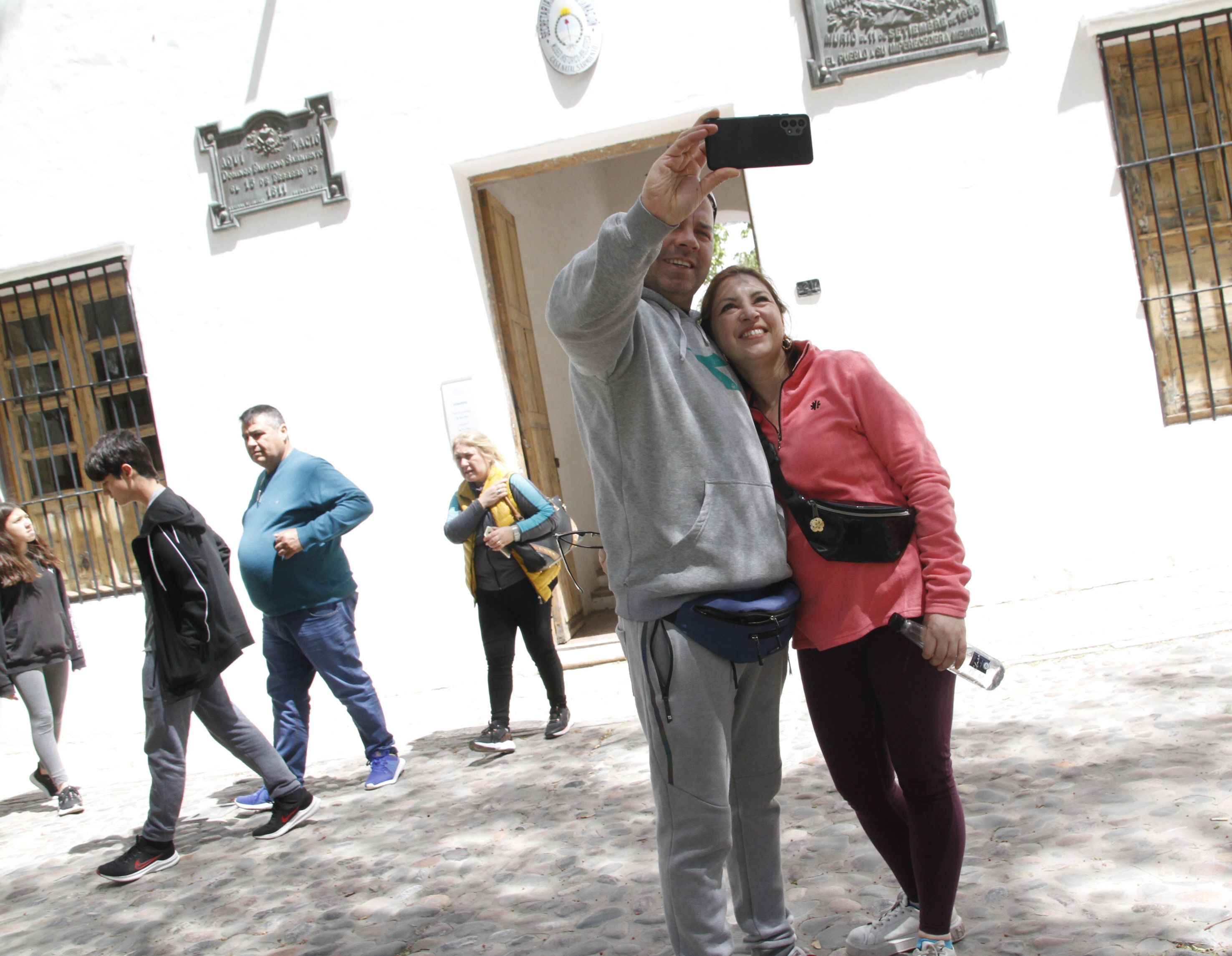 Recuerdo. Los turistas que visitaron la Casa Natal de Sarmiento se hicieron varias selfies para llevarse como recuerdo de su visita a San Juan.