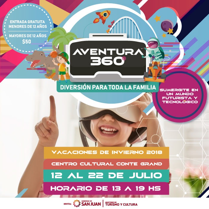 Del 12 al 22 de Julio grandes y chicos podrán vivir una "Aventura 360º" en el Centro Cultural Amadeo Conte Grand. Por ser hoy el día de la inauguración, la entrada es totalmente gratuita.