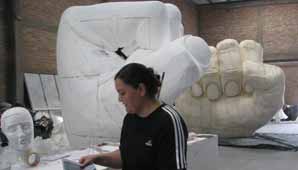 “Tenemos dos puños masculinos con un ancho de 2,50 y le falta la parte del antebrazo y van a tener diez metros de altura y que van a acompañar a una figura femenina que estará recostada en la parte central del escenario y que va a tener 17 metros de diámetro”, expresó Claudia Díaz.