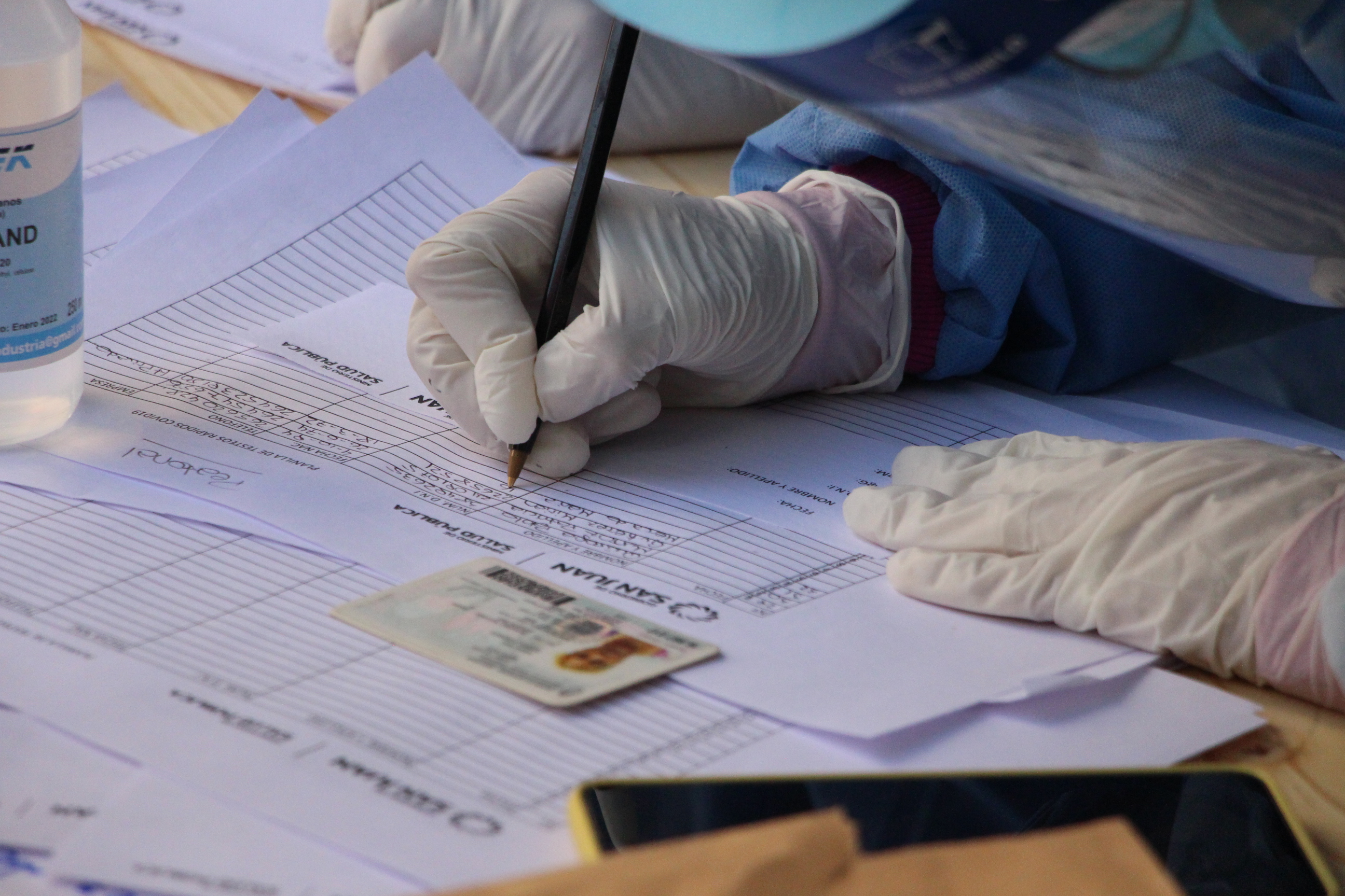 Una vez que llegan, los interesados deben sumarse a la fila para la toma de datos. Se trata del paso más lento y tedioso, por la cantidad de gente que concurre a someterse el test. Personal de Salud anota los datos del DNI y otros, como el número de teléfono. Hay personal policial y municipal controlando que en la fila se respete el distanciamiento.