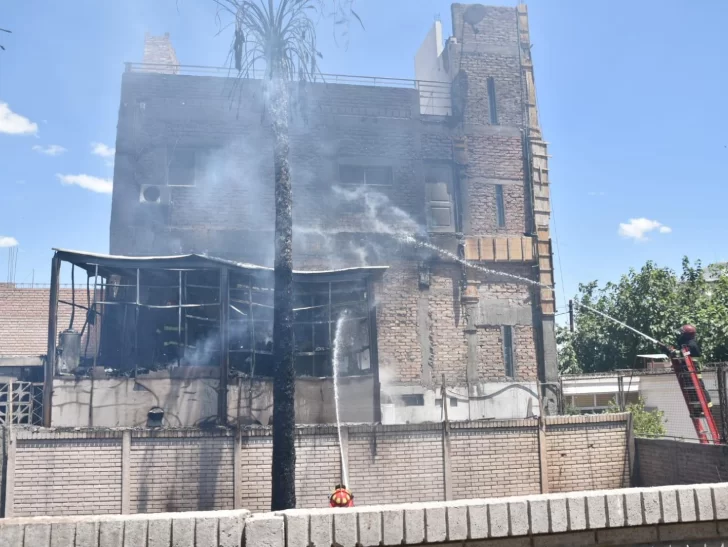 Un voraz incendio se apoderó de un edificio donde funciona un taller de confección de camperas y también hay departamentos residenciales, ubicado en calle Maipú entre Tucumán y Avenida Rioja -departamento Capital- y que demandó un gran esfuerzo de personal de Bomberos para poder ser controlado, antes que se siguiera expandiendo.