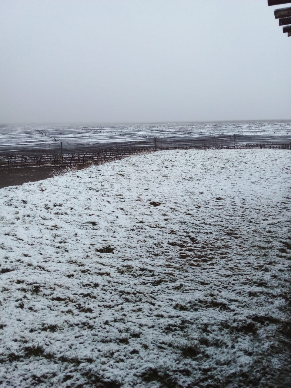 Fuentes de la Subcomisaría Soria indicaron que la nieve comenzó a caer durante la madrugada y vistió de blanco todo el paisaje de la localidad sarmientina.