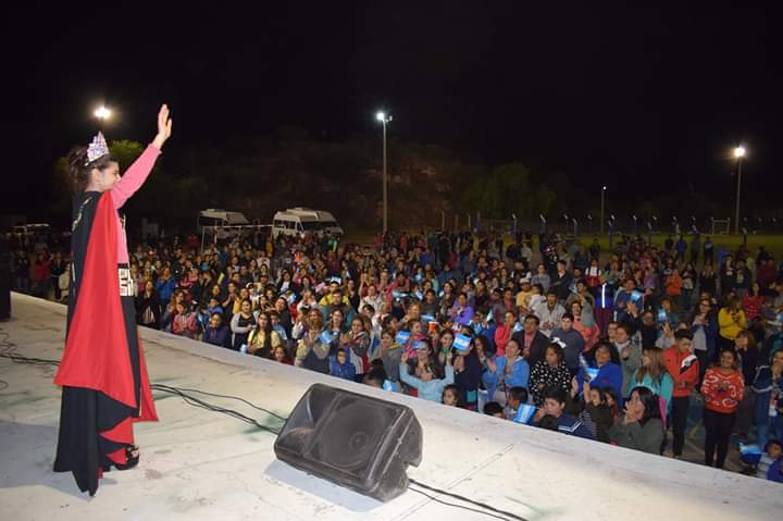 Alrededor de las 19, la morocha pisó suelo vallista ataviada con su capa y su corona. Al arribar, subió a la caja de una camioneta para participar de la caravana e ir saludando a quienes se reunieron a orillas de las calles.