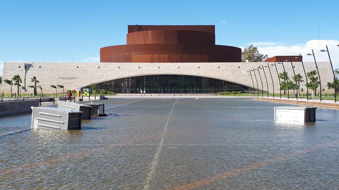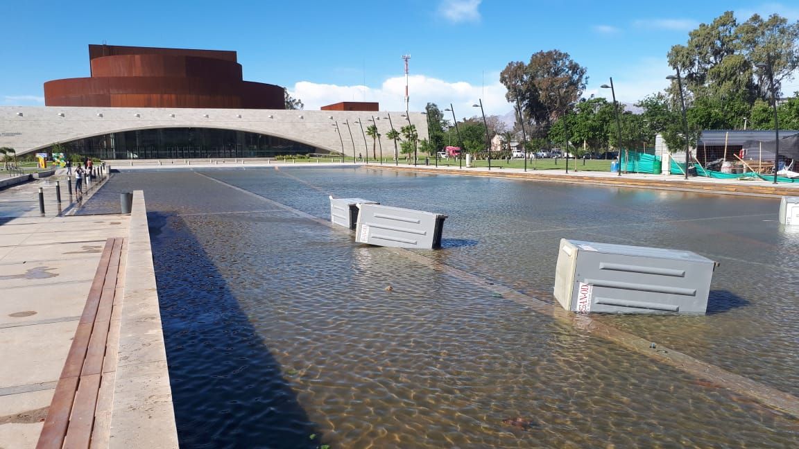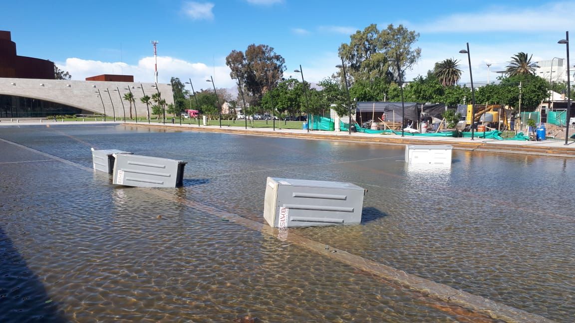 Fuertes ráfagas de viento causaron destrozos en gran parte de la provincia, obligando además a suspender el normal dictado de clases. Esta mañana, la fuente de la Plaza del Bicentenario amaneció con cuatro baños químicos en su interior.