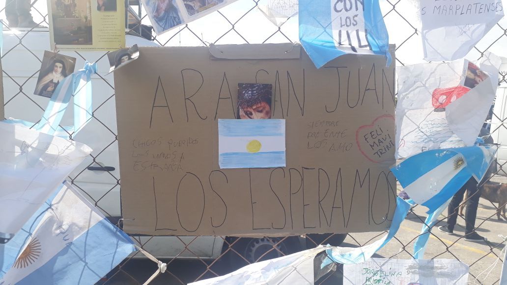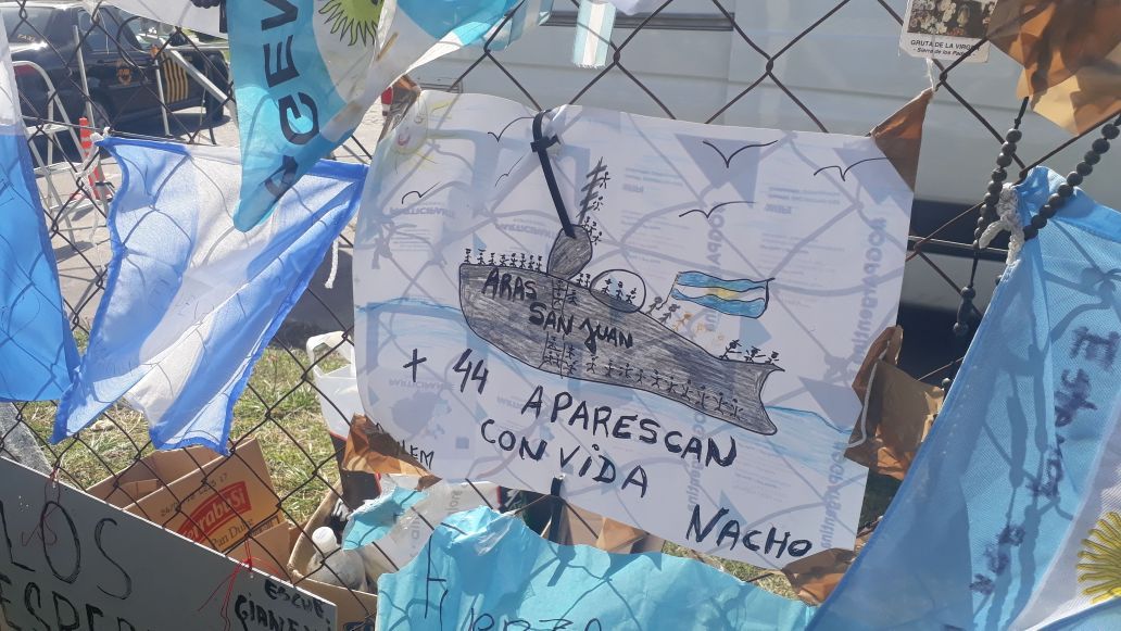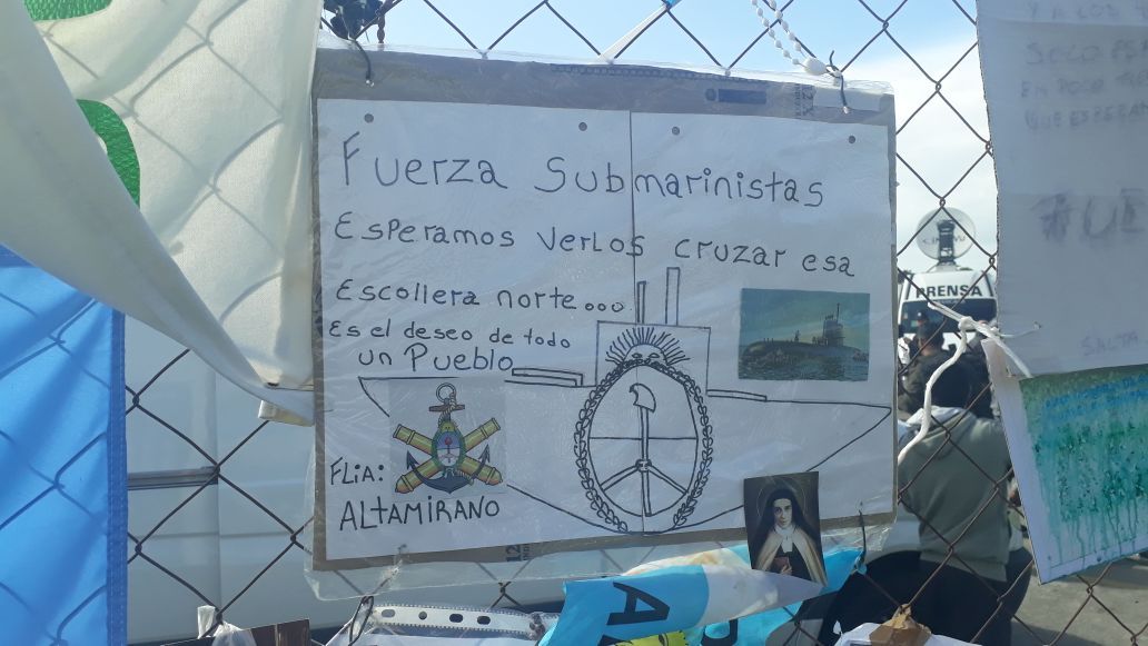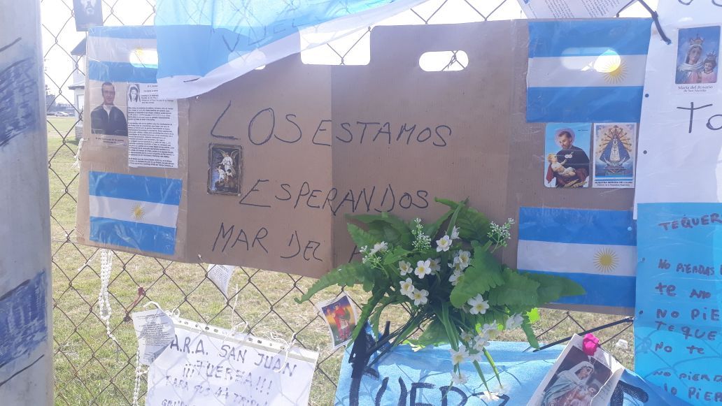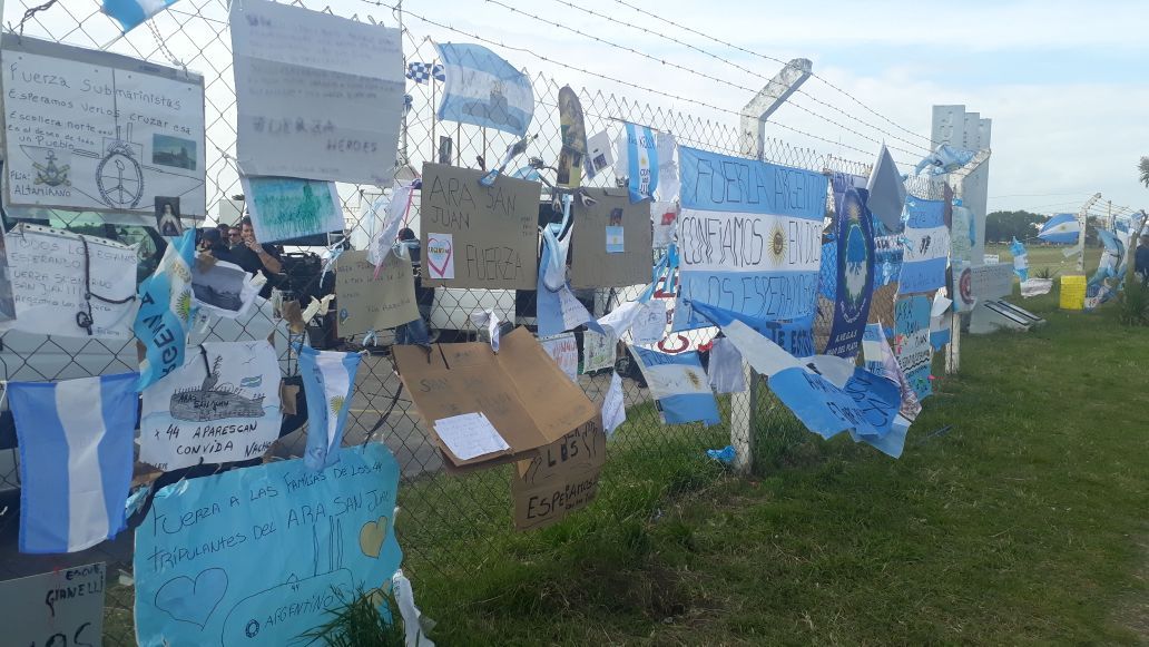 La Base Naval Mar del Plata es para el círculo íntimo de los 44 tripulantes del submarino ARA San Juan el sitio donde reciben el parte oficial y que también son contenidos. Los más cercanos ingresan, y otros se acercan a las puertas del destacamento militar. Algunos dejan estampitas, otros flores y la mayoría carteles con mensajes que conmueven.