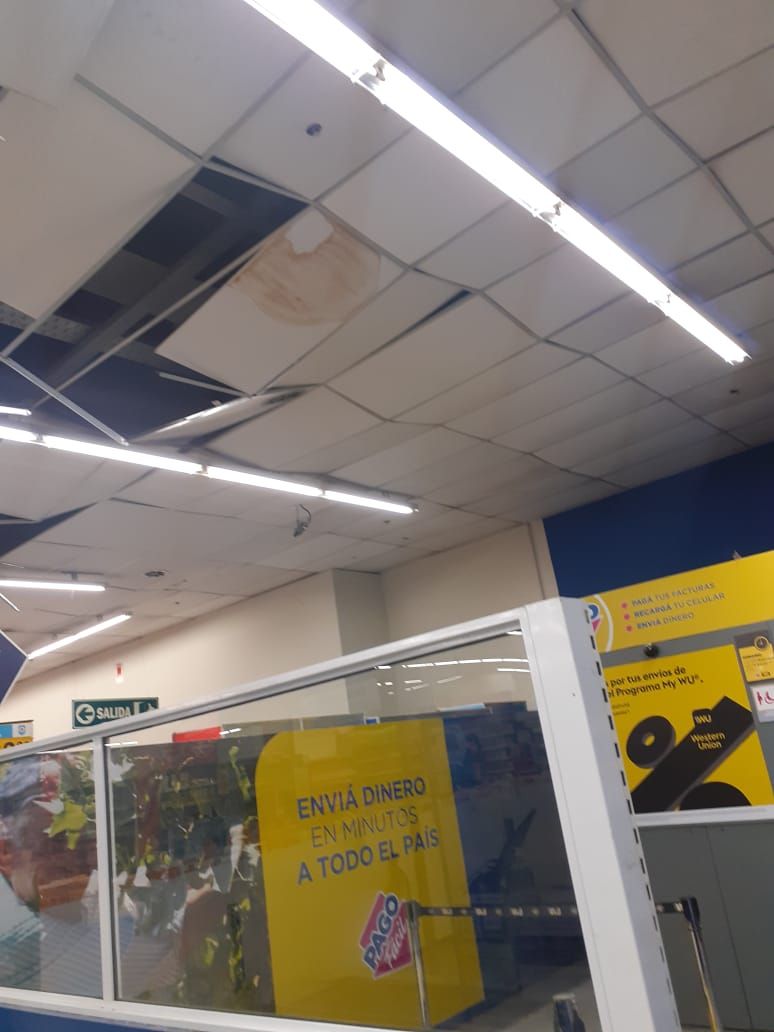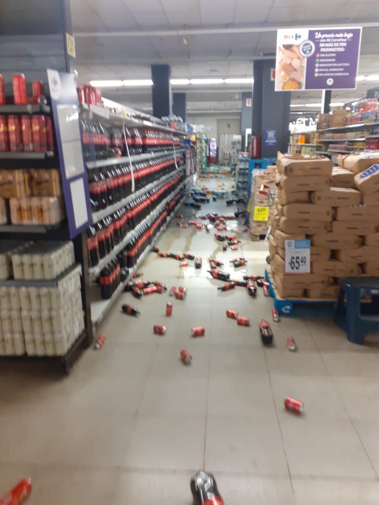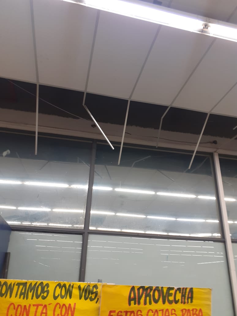 En horas de la madrugada comenzaron a viralizarse imágenes en las que se observa parte del techo con roturas y mercadería en el piso, luego de que el temblor las tirara de las góndolas.