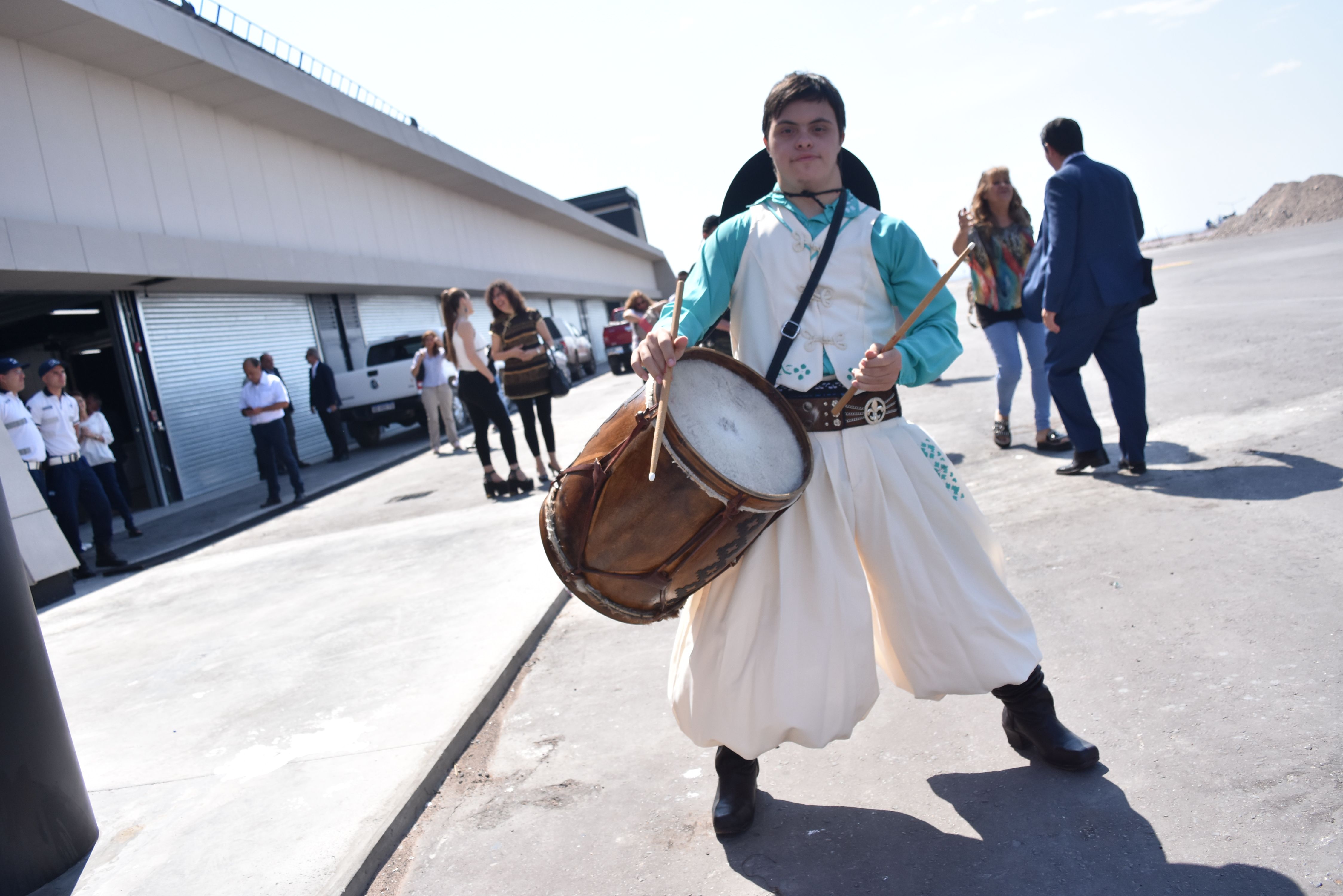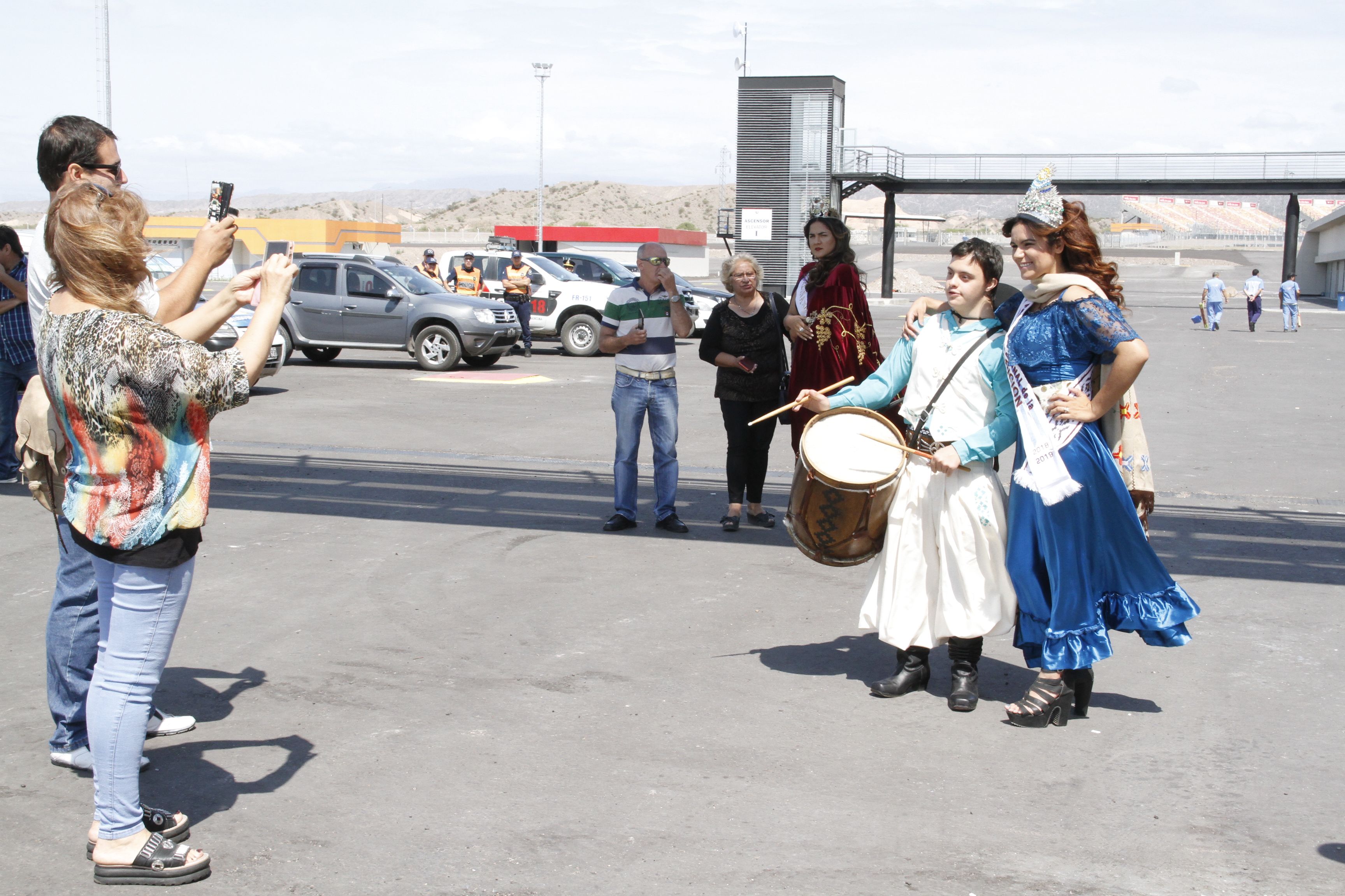 Recibimiento.Cuando Uñac arribó al autódromo El Villicum, Facundo comenzó a tocar el bombo para darle la bienvenida.