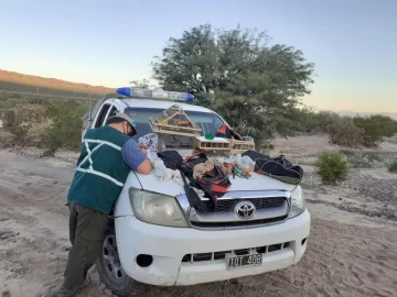 En la ruta provincial Nº 54, en la zona de Matagusanos, el cuerpo de agentes que se desempeña en el área protegida Loma de las Tapias, interceptó una camioneta bajando del puesto La Orqueta, departamento Ullum. Luego de un rastrillaje en la zona, fueron encontrados bolsos y mochilas con elementos utilizados para capturar aves canoras. Inmediatamente se decomisaron en el lugar ocho aves de la especie benteveo, cinco de ellas pichones trampeados y tres llamadores machos, un transportador de cinco compartimientos, un transportador de tres compartimientos, dos trampas de piso plegables, una jaula de madera y alambre, dos tramperos con tapas laterales de red y una gomera. En este procedimiento se dio intervención al personal de la Comisaría 15 de Ullum. Por disposición de la Dra. Gallo correspondiente al Juzgado de paz de turno, las aves fueron liberadas en una zona apta para su desarrollo.