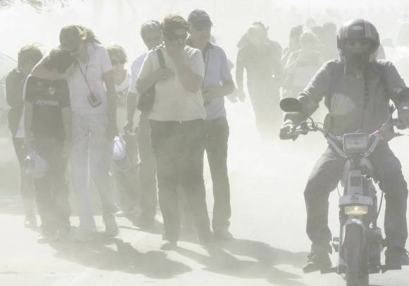 Con el viento golpeando en la cara, los madrugadores que llegaron a la Difunta Correa cuando apenas amanecía esperaban su turno para subir a los micros que los llevarían de vuelta a Caucete o a la capital de San Juan. El inmenso descampado que hacía las veces de terminal de ómnibus se convertía, de a ratos, en un inmenso vórtice del cual salían nubes blancas de tierra que no dejaban ver a más de un metro. En el acceso al paraje, eran tantos los que se iban como los que llegaban: mientras unos escapaban de la temperatura que instaló el Zonda, después de cumplir su promesa, otros arribaban con la cara desencajada por el calor. Y antes del mediodía ya eran 15.000 las personas que habían llegado, según los datos de la Policía.