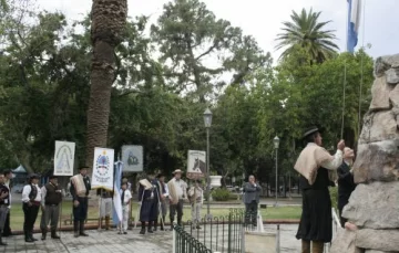 Con mate y semitas y luego un sencillo acto se festejó ayer el Día del Gaucho, en la Plaza 25 de Mayo. Lo hizo la Federación Gaucha Sanjuanina, temprano y aún con las huellas de la lluvia.