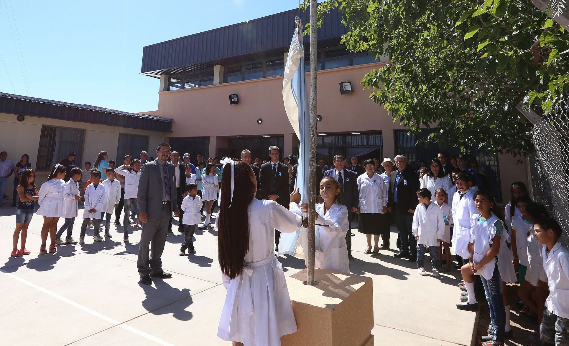 El gobernador Sergio Uñac encabezó allí el acto en el que también se inauguraron las obras de remodelación del edificio educativo y, con ayuda del Ministerio de Desarrollo Humano, de la construcción de un playón polideportivo. A la escuela asisten 200 alumnos y también cuenta con un anexo en Casas Viejas y otro de educación especial.