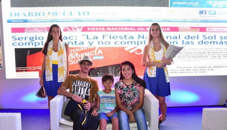 Diario de Cuyo | HOME | San Juan | Fns 2016 Fotos en el stand, parte I El público visitó el lugar que DIARIO DE CUYO tiene en la Fiesta Nacional del Sol para sacarse una foto y luego poder verla en nuestra web. Mirá la galería de fotos. Por Redacción Diario de Cuyo 26/02/2016 · 0:00 Ver los comentarios ›