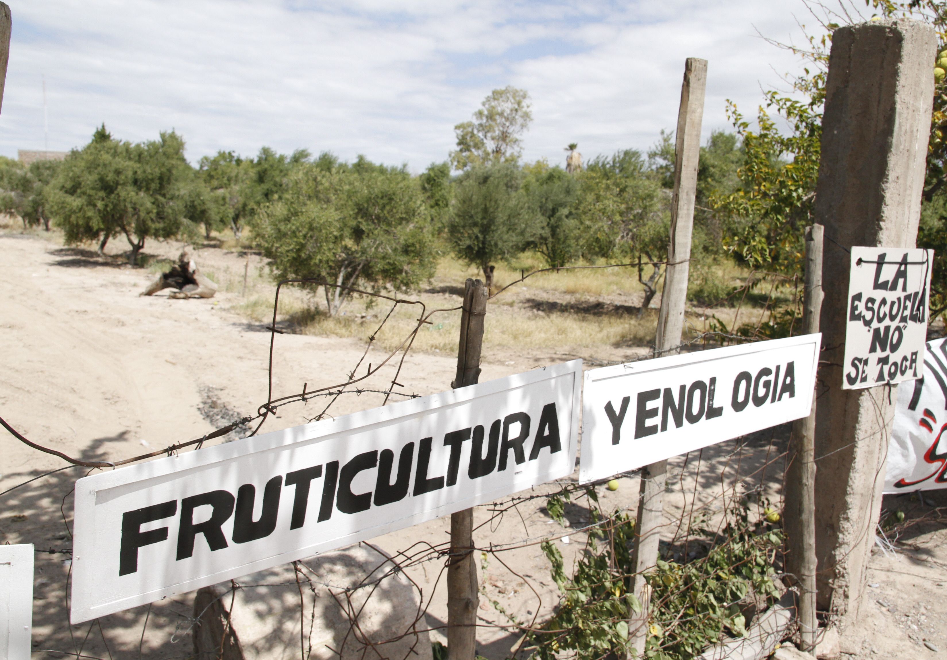 Práctica. En el terreno que ayer encendió la polémica hay un olivar donde los chicos realizan prácticas de olivicultura y producción de aceite de oliva.