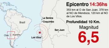 Este fue el tercer sismo percibido en la provincia en lo que va del día. El primero se registró a las 2,39 de la madrugada. En San Juan y Mendoza tuvo una intensidad de III grados en la escala Mercalli modificada y la Magnitud fue de 6,2 grados.
