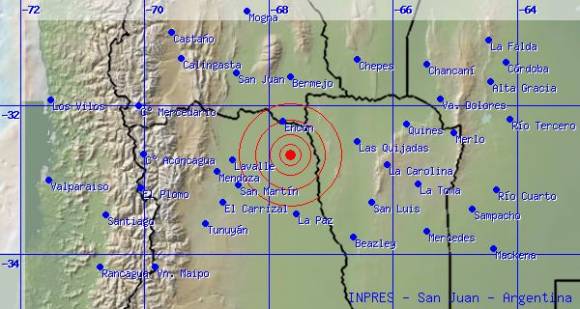 Según el INPRES, a las 03:19:13 un temblor de 5,4° tuvo epicentro a 70 kilómetros del centro de Lavalle con una profundidad de 17 kilómetros. La Intensidad del sismo alcanzó el grado IV a V en la escala Mercalli Modificada y en las localidades cercanas al epicentro en la provincia de Mendoza. Mientras que los sanjuaninos lograron percibirlo con una intensidad de III a IV en la ciudad de San Juan mientras que en San Luis llegó al grado III y de II a III en el oeste de Córdoba.