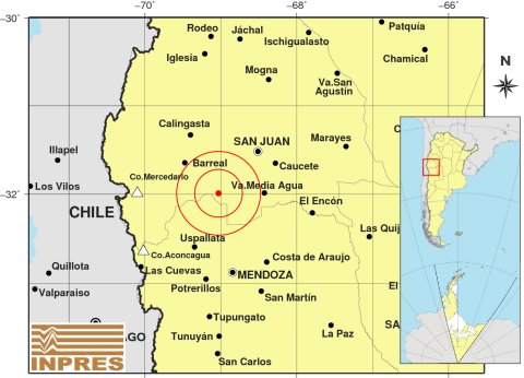El Instituto Nacional de Prevención Sísmica (INPRES) informó a través de su página web de un evento ocurrido a las 18:29:29 ocurrido en el sur de San Juan, casi en el límite con Mendoza.