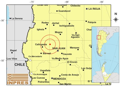 La página web del Inpres indicó que a las 20:44:09 de hoy la tierra se movió y el sismo fue sentido. La magnitud del evento fue de 4,2° en la Escala de Richter.