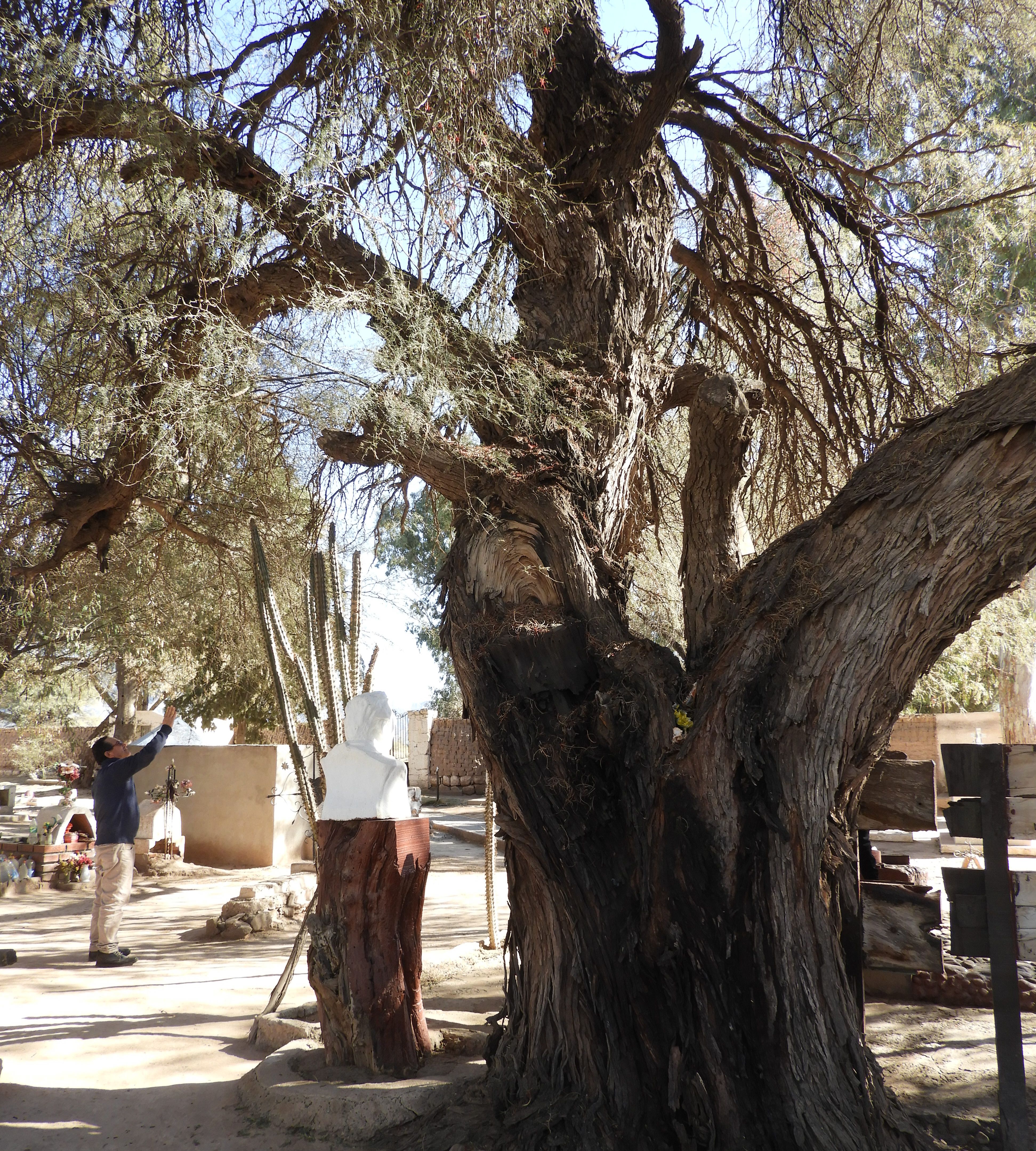 El algarrobo que custodia la tumba de Buenaventura Luna, en el cementerio municipal, es el que se encuentra en peligro por las malas podas sucesivas a las que fue sometido, según el informe que elaboraron biólogos de la UNSJ. Eso hizo que tuviera un crecimiento descontrolado y que una rama de gran porte quedara a 45 grados del suelo y con riesgo de caerse. Esto desgarraría el tronco principal dejándole una gran herida abierta por la que pueden ingresar agentes patógenos que terminen por enfermar al árbol.