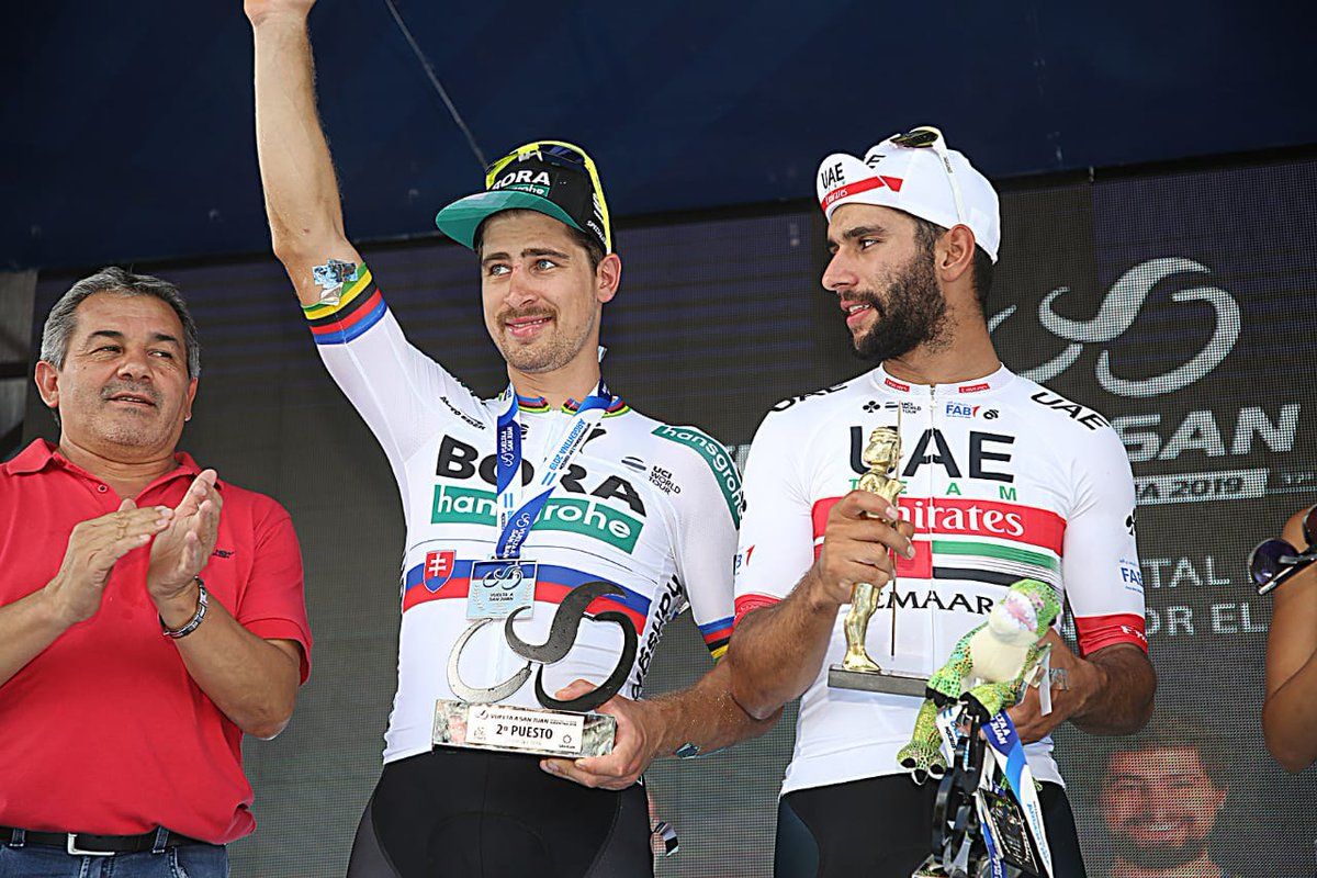 Sagan y Gaviria, durante la premiación en Valle Fértil