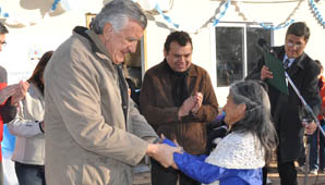 San Juan, 16 de junio.- El gobernador de la provincia, José Luis Gioja, visitó la localidad de Mogna, en Jáchal, donde encabezó laentrega de 7 módulos habitacionales de emergencia, en la localidad de Mogna, departamento de Jáchal.