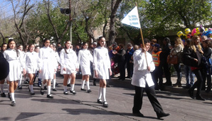 San Juan, 11 de septiembre.- Decenas de personas asistieron hoy al desfile por un nuevo aniversario de la muerte de Domingo Faustino Sarmiento, realizado esta mañana frente a Casa Natal.