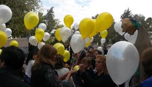 San Juan, 17 de abril.- En el marco del Día Mundial de la Hemofilia, la organización FundaMe realizó la suelta de globos amarillos y blancos en el Hospital Rawson. Todos los chicos que están bajo tratamiento por padecer la enfermedad formaron parte de la actividad y, además, disfrutaron un show de magia y otro de títeres.