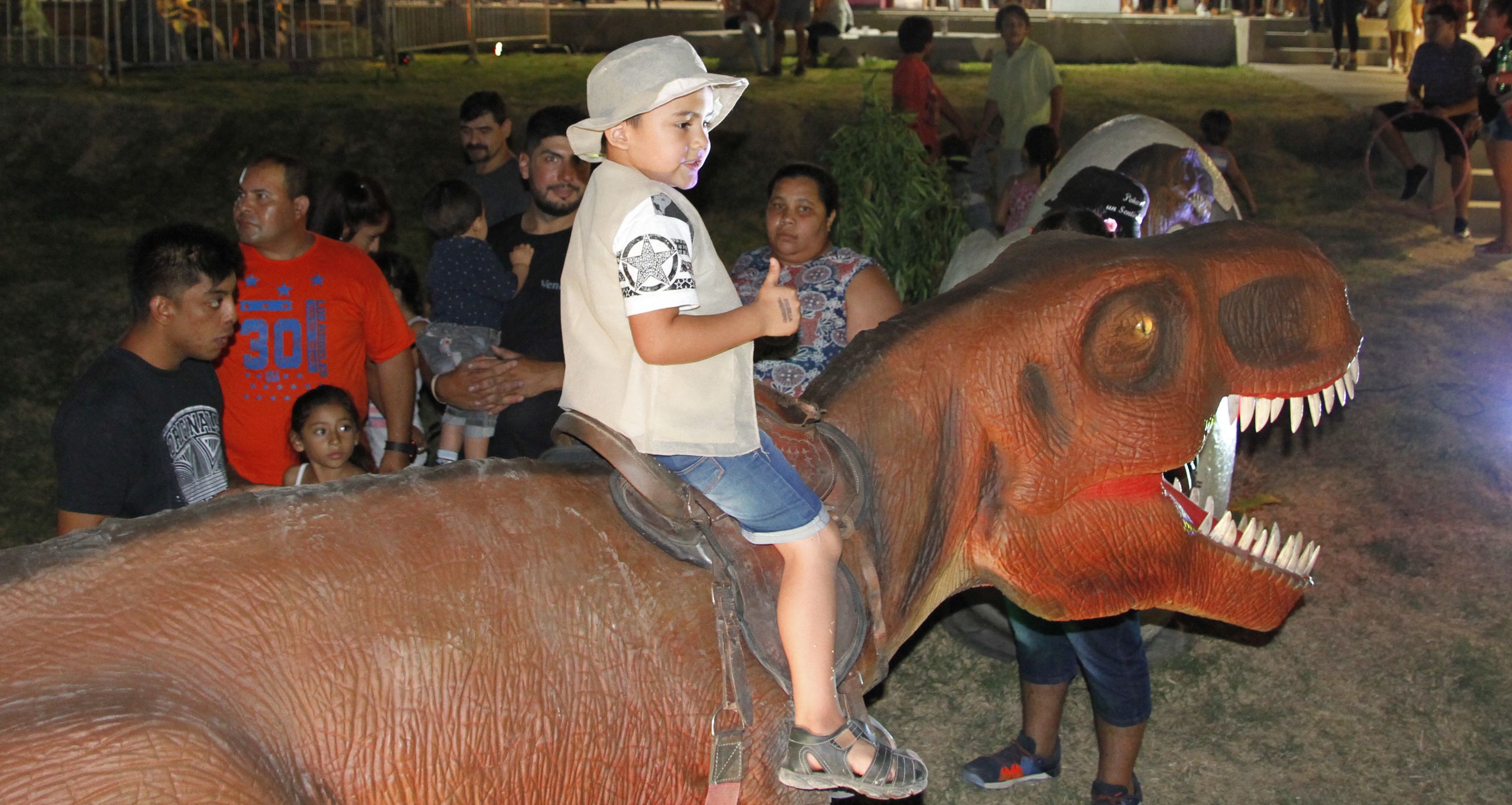 Es fácil verlos desde lejos. Sus movimientos, su enorme tamaño, sumado a la iluminación especial que les colocaron, hacen que ese sector también sea uno de los principales atractivos de la Feria y Exposición Temática en el predio de la Costanera. Se trata del Parque Jurásico que promociona el Parque Ischigualasto y que atrapa la atención de grandes y chicos.