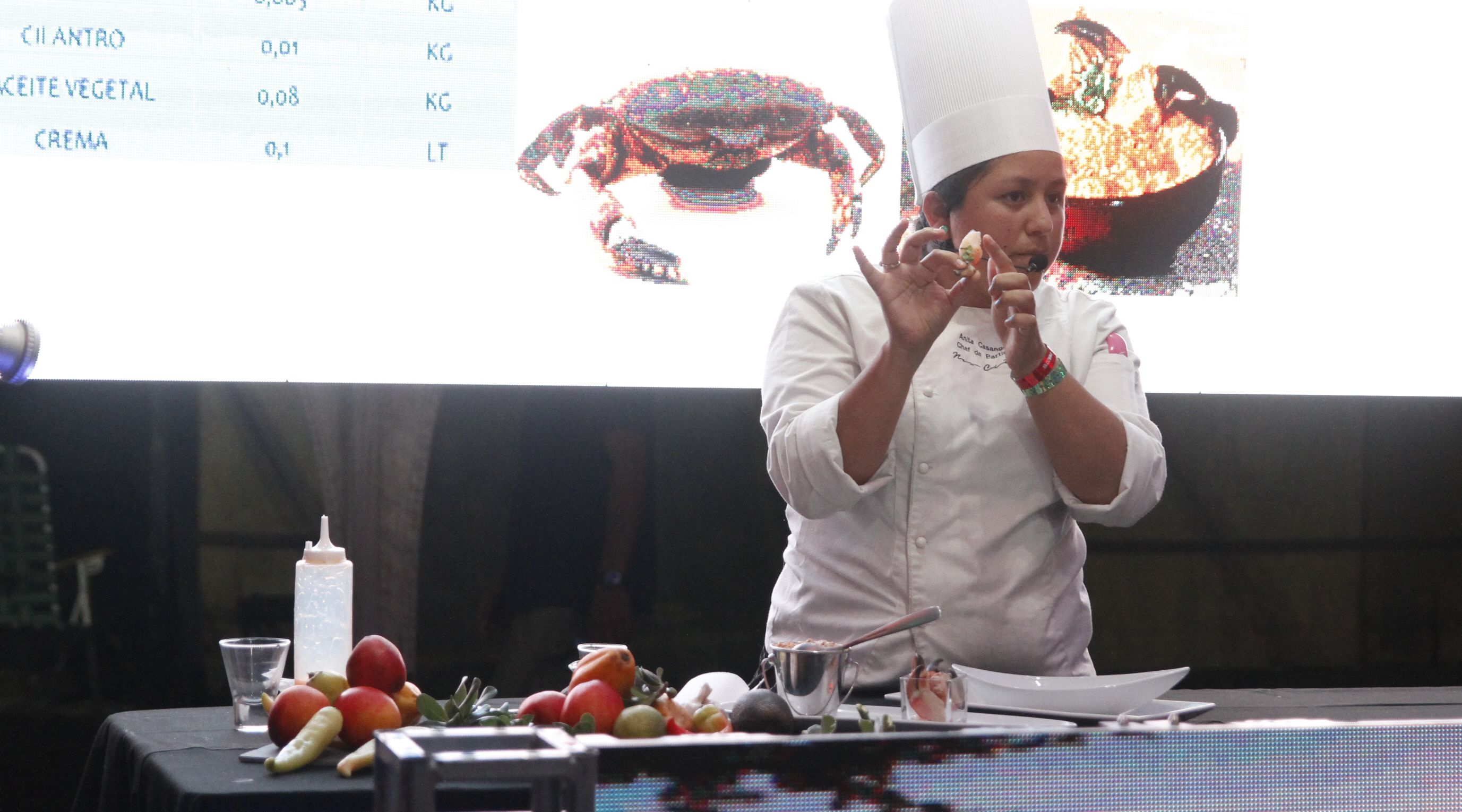 Un gran atractivo del stand de Chile es la cocina en vivo. Allí, importantes cheffs cada noche realizan comidas para todos los presentes y van mostrando el paso a paso de la elaboración.