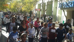 San Juan, 7 de junio.- Cientos de chicos, jóvenes, adultos y chicos con capacidades especiales colmaron las calles de la Capital de San Juan en una nueva maratón por la fundación de la Cuidad de San Juan.