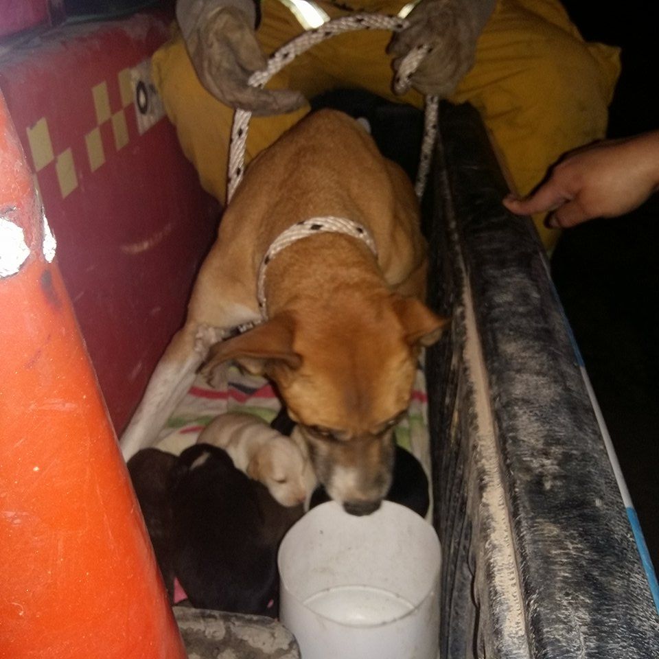 Se trataba de una perra y 6 cachorritos, que estaban sin poder salir y claramente afectados por el frío. El operativo duró unas dos horas y ahora buscan que alguna familia los adopte.
