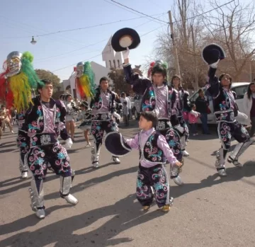 El rezo del rosario salía estridente del altoparlante, pero se diluía abajo, cuando se metía en la marea de sones atrompetados, tintineo de cientos de cascabeles y gritos de loas a la Virgen de Copacabana, patrona de Bolivia. Era en el rivadaviense barrio Aramburu, pero daba la sensación de que el pueblo andino de Copacabana hubiera mudado hasta allí todo su estallido de colores eléctricos, lentejuelas y danzas rituales, herencia aborigen y pariente del carnaval, para honrar a su Virgen morena. Al mediodía de ayer, casi un millar de personas pudo participar o simplemente presenciar una de las procesiones más coloridas y alegres que se hace todos los años en la provincia.