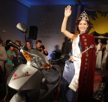 Pero hubo un momento de donde demostró alegría y fue cuando los locutores anunciaron el ingreso de la moto 110 cc. que le correspondía a ella. En ese momento a la nueva Reina Departamental no le importó mantenerse erguida y hacer movimientos suaves, y con una sonrisa tomó la moto mientras buscaba a su familia para celebrar por el premio obtenido. La segunda chica más votada se llevó un cheque de 1.500 pesos, mientras que para las otras precandidatas como premio tenían un cheque de 1.000.