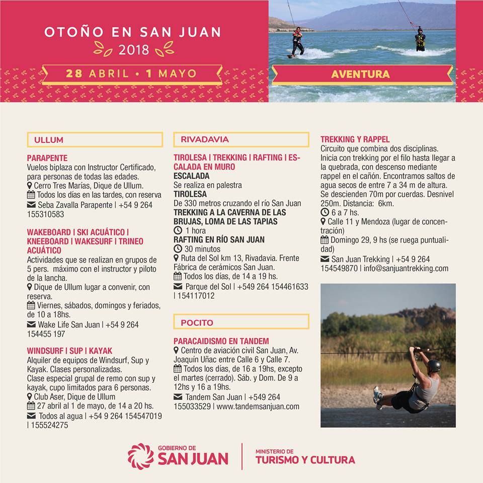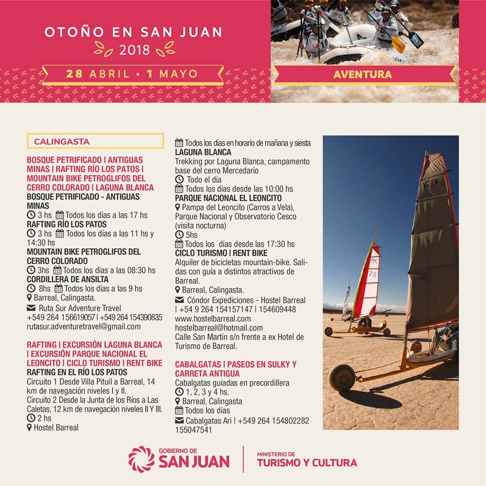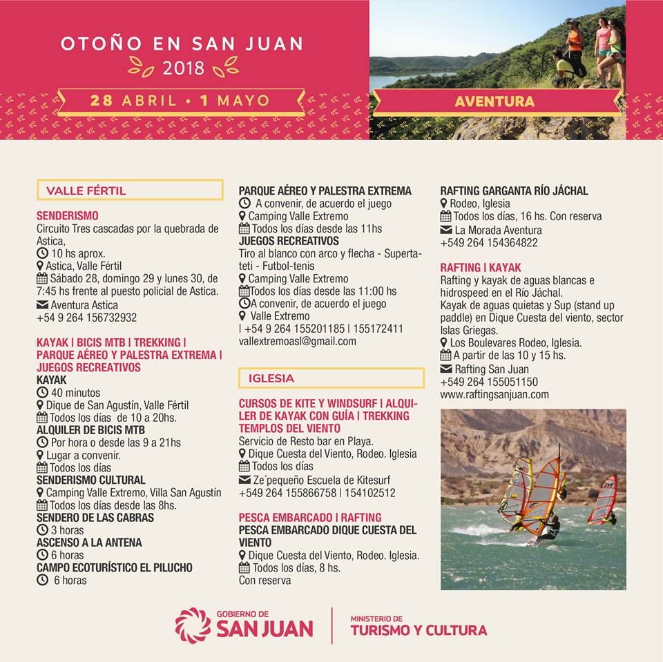 Además, en departamentos como Jáchal, Calingasta, Valle Fértil e Iglesia las opciones para los turistas son  variadas.