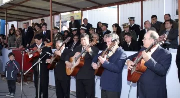 A pesar de que tradicionalmente los primeros pasos de los desfiles cívico militares están marcados por el sonido y el ritmo de las trompetas y los bombos, en el desfile dedicado al Libertador fue el sonido de las cuerdas de las guitarras el que dio paso a las banderas Nacional y Provincial que encabezaron la marcha sobre la calle. Después, sí comenzaron a sonar los tradicionales instrumentos de la Banda del RIM 22 y de la Banda de la Policía, quienes se turnaron para interpretar su música mientras las escuelas, los institutos, los clubes y las distintas instituciones albardoneras desplegaron su color en el desfile.