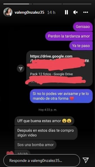 "Ayúdenme a denunciar mi cuenta de Instagram. Me la hackearon y la están usando para estafar gente con supuestas fotos. Yo jamás subiría ese tipo de contenidos a mis redes sociales", aseguró la joven en Facebook. Y agregó: "Ayúdenme Reportando a valeng0nzalez35 para que cierren la cuenta lo más rápido posible".