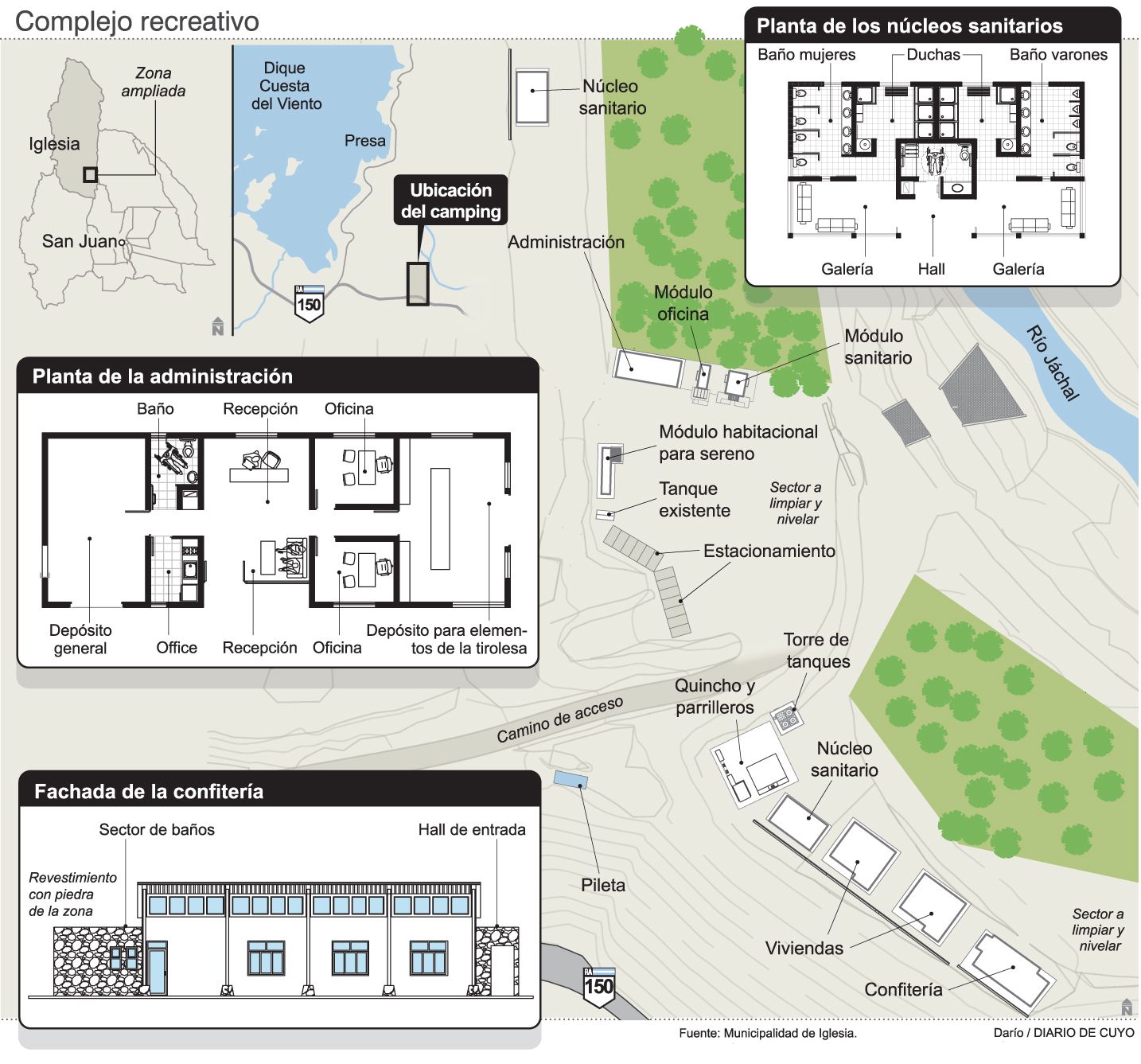 "Cerca del paredón hay una arboleda muy grande que estaba deteriorada. Tenía los árboles secos y viejos. Hace tiempo nos dieron autorización para mantener ese espacio y eso estamos trabajando porque ahí es donde queremos hacer este camping", comentó Espejo y dijo que tendrá sanitarios, instalaciones para acampar, estacionamientos, oficinas para informar a los turistas y algunos sectores dedicados al deporte aventura.