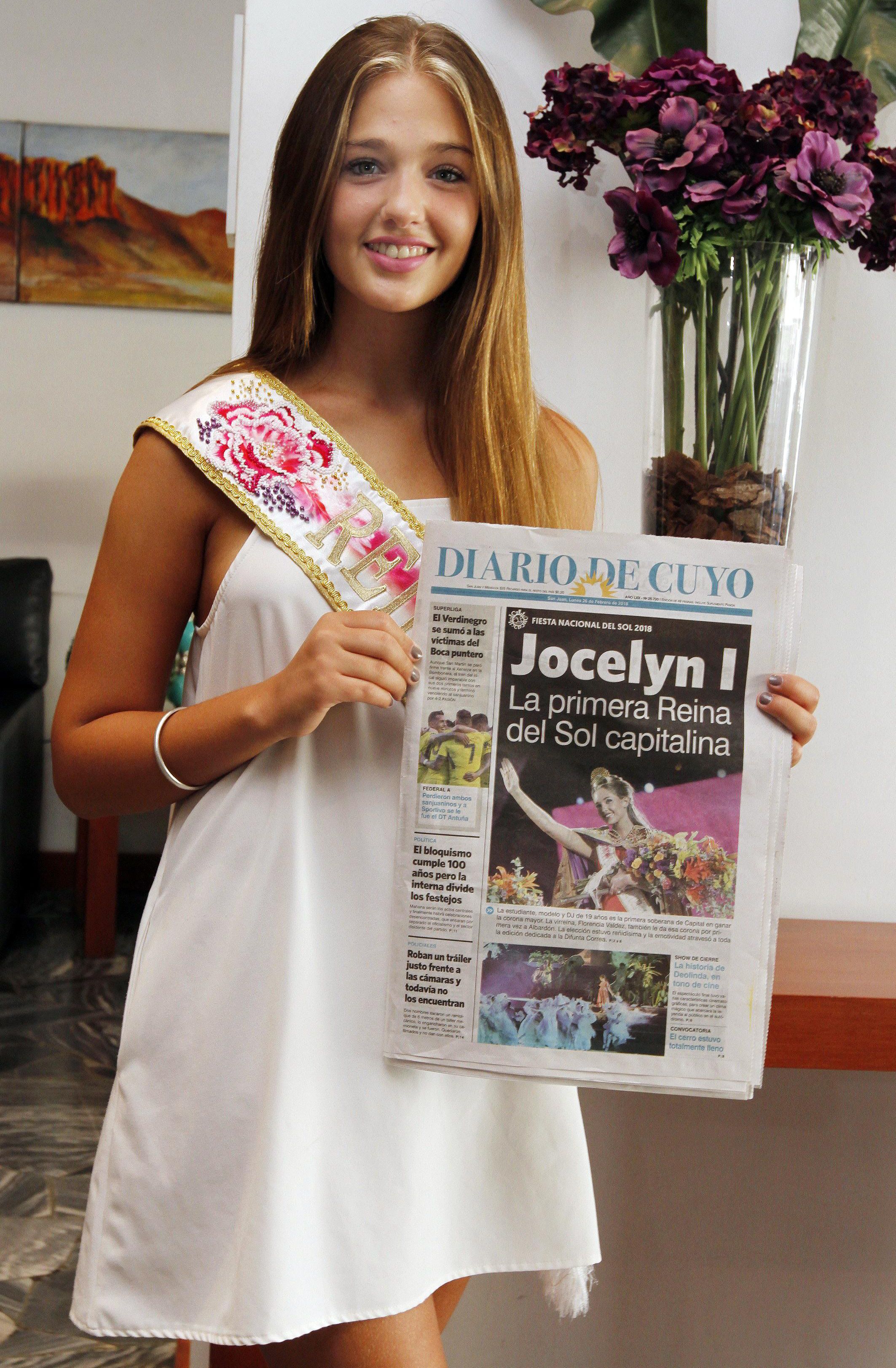 Jocelyn confesó que supone que durante el año de reinado tendrá poco tiempo disponible para sus actividades particulares, pero que tratará de aprovecharlo al máximo para continuar estudiando y para tomar clases de manejo. “Todavía no sé conducir y quiero aprender para poder disfrutar del auto que también gané por ser Reina”, dijo.